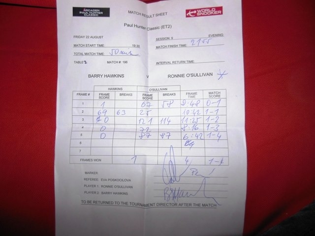 Ve Fürthu jsem při srpnovém turnaji PTC měla tu čest být u stolu s Ronniem O’Sullivanem při jeho zápase s Barrym Hawkinsem. Není moc běžné, že se člověku splní a zhmotní sen, ale přesně to tento zápas pro mě znamenal. Krom toho jsem zažila zápasy s Anthonym Hamiltonem, Lucou Brecelem a dalšími, ovšem Ronnie to všechno jaksi přehlušil.